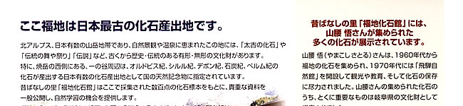 「福地化石館」は当庵・先代が「日本最古 福地の化石」の保存の為に収集、そして旧ひだ自然館にて展示公開していた化石コレクションを新しく再公開された展示館です。どうぞおくひだ来訪時には、一度、ご来館くださいませ―。