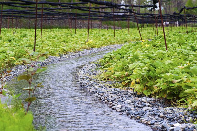 東京ドームを11個分に相当する、広大なわさび農場。 わさびの製造現場の見学や、とれたてのわさびや、お料...